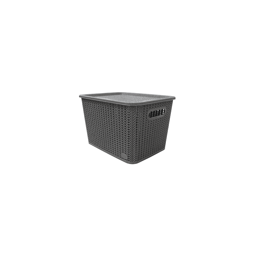 Keep your home organized in style with the Elegance Storage Basket with Lid. Designed with a textured woven look, it’s perfect for storing clothes, toys, accessories, and more. The attached lid helps keep contents dust-free while the side handles allow easy carrying.